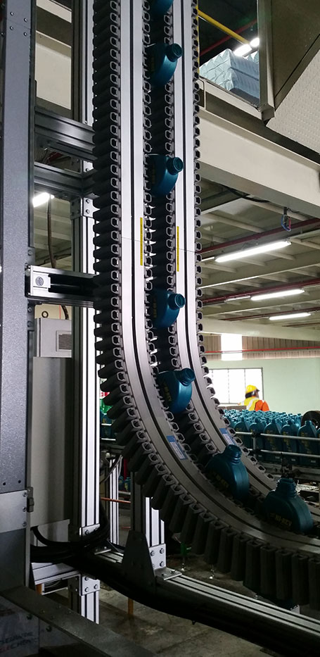• Convey cartons, cases, trays and totes in an upwards or downwards continuous flows.